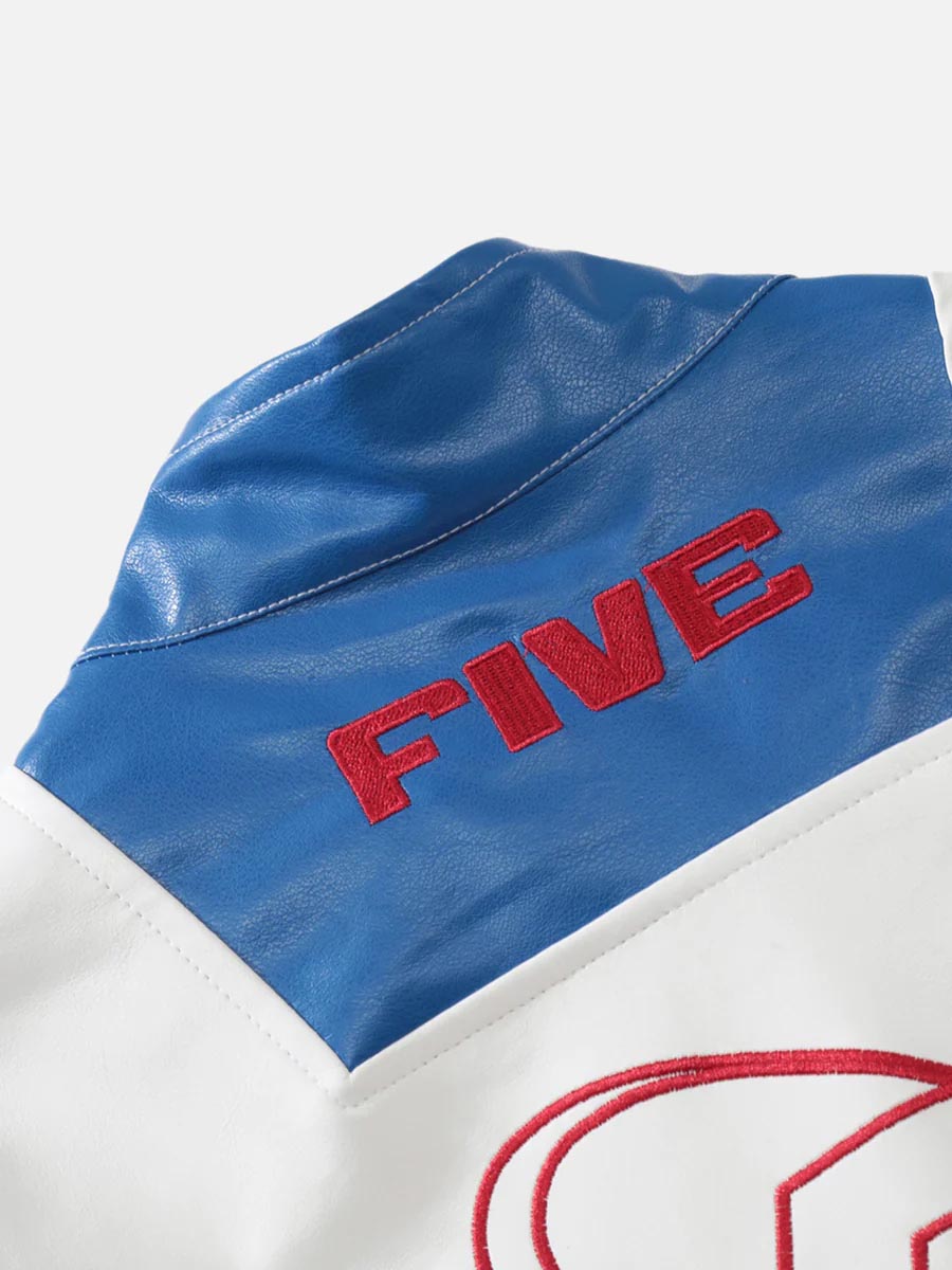 Badge Short PU Leather Racing Jacket – 1631